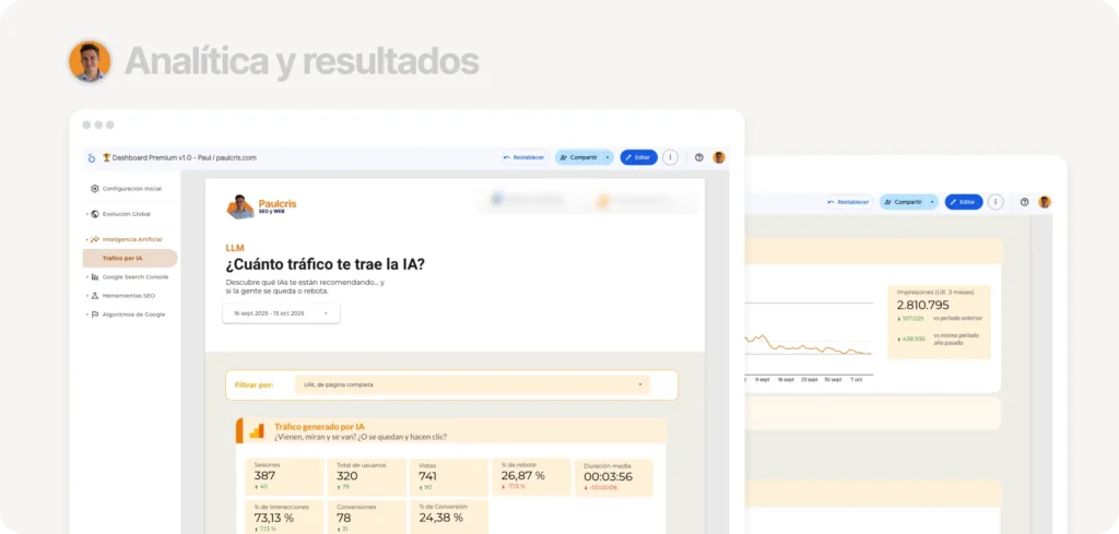 - Lo que verás: Clics, posiciones, palabras clave que crecen y el estado real de tu web.
